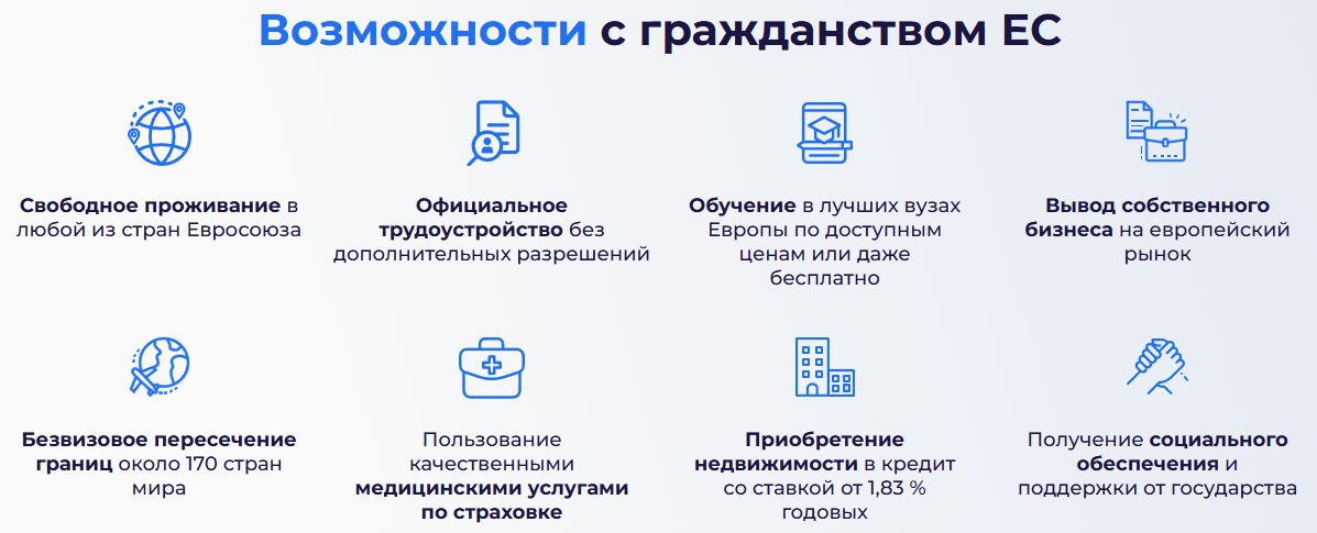 Европейское направление — основной фокус компании. EUPassForYou сопровождает клиентов в получении гражданства трёх государств-членов Евросоюза: